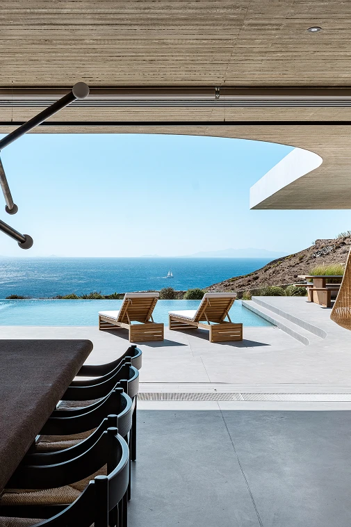 Generously developed on a large plot of 14,000sqm in one of the most privileged locations on the island of Mykonos, Aimasia residence immaculately assimilates innovative building materials and technologies with time-honored aesthetics, reflecting a fruitful dialogue between tradition and modernity.